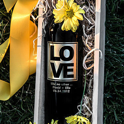 We've done this LOVE format a few different ways -- because its always so popular. This version here is clean and contemporary, deeply etched and painted in shimmering silver. Modern personalization fonts round out the sheer modern-ness of it. Made for the modern lovers amongst us! :)
