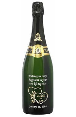Yet another variation of the ever popular "Two Hearts" design. The silver text reads: "Wishing you every happiness in your new life together." The first names of the bride and groom are engraved inside the joined hearts, all in gold. The date appears at the bottom, in silver. Elegant, beautiful, unforgettable.
